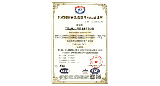 職業(yè)健康安全管理體系認證證書