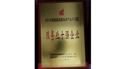 年度南昌高新技術(shù)產(chǎn)業(yè)開發(fā)區(qū)服務(wù)業(yè)十強企業(yè)
