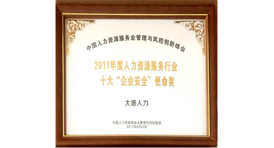 人力資源服務(wù)行業(yè)十大“企業(yè)安全”使命獎