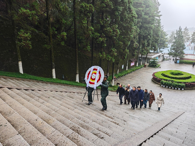 當日上午7:30,銀控集團一行人懷著崇敬的心情來到井岡山革命烈士陵園。紀念碑莊重威嚴,靜靜訴說著革命戰(zhàn)爭時期的崢嶸歲月。在李總的引領下,集團管理層人員整齊排列,邁著沉重的步伐,向革命烈士紀念碑敬獻花圈。花圈上的緞帶書寫著“烈士永垂不朽”,承載著銀控集團對革命先烈的無限敬仰與追思。